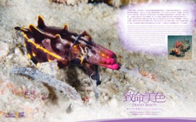 火焰墨魚的體色一般為深褐色,特別擅於根據環境轉換體色偽裝自己。當遭到刺激而興奮的時候,火焰墨魚的體色會變得絢麗奪目,從泥沙色(見小圖)變為閃爍著紫色、紅色、黃色和白色的斑紋。這隻體長十厘米緩慢前行的火焰墨魚搖身一變成為海洋中最奇特的動物。這些絢麗的斑紋還有動態效果,會在身體上不斷地「流動」,就像舊式理髮店門口的紅白藍轉筒一樣。而火焰墨魚身體和頭部的突起,讓牠看起來像個外星人。 火焰墨魚主要捕食底棲的甲殼類生物和魚類。