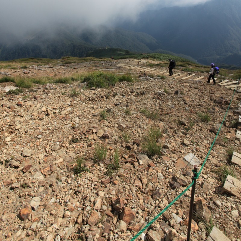 ▲日本谷川岳:土石鬆散,但木板階梯依然穩固。