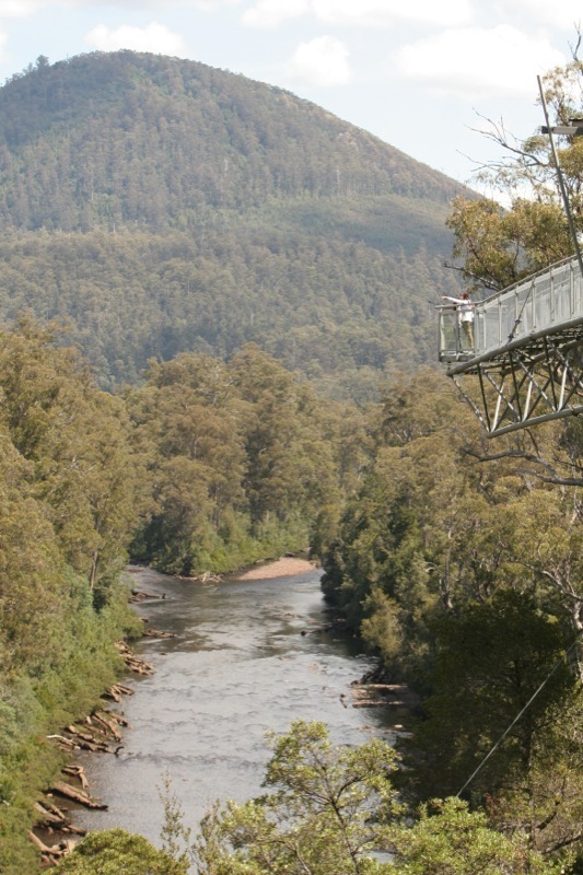 在這片世界遺產的邊緣,你已感受到塔斯曼尼亞森林的原始氣息。在南部侯恩谷的塔胡恩空中走道,你可以輕鬆地在原始森林中漫步。這條凌空二十多米的空中走廊經過精心設計,確保建造過程不會影響森林的生態環境,遊人又能鳥瞰濕潤的桉樹林中,層次分明的樹冠層、中層的葉子花果、茂盛的雨林灌木層及其中的生物。