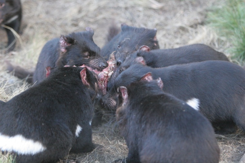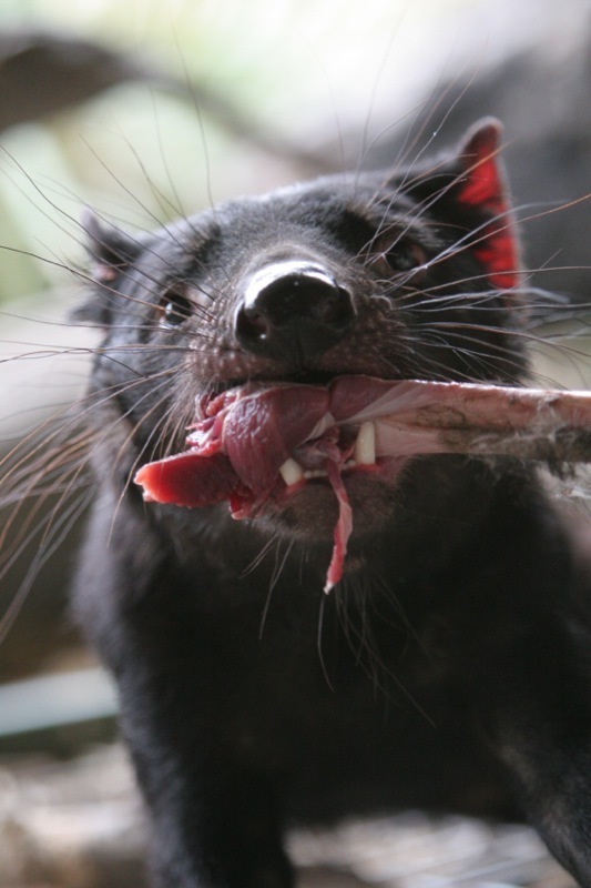 塔斯曼尼亞惡魔又稱袋獾,是世界現存最大的肉食有袋動物。當歐洲人踏足塔斯曼尼亞,他們被這惡魔似的夜行動物嚇壞了——全身黑色的皮毛、猙獰的面孔、狼吞虎嚥的食相,還有令人毛骨悚然的嚎叫。儘管外貌絕不討好,作為生態系統的頂層「消費者」,塔斯曼尼亞惡魔對保持生態平衡舉足輕重。塔斯曼尼亞惡魔確實是機會主義者,牠們主要吃腐肉,清理在大自然的動物屍體,每次可吃下自己體重三分之一的食物,連皮毛和骨頭也不放過。牠們雖然只有小狗般大,但驚人的牙力卻可媲美大白鯊和鱷魚。惡魔媽媽每次可懷胎二十隻小惡魔,但牠每胎只會餵養最多四個孩子,確保可存活的必是最強壯的小惡魔。