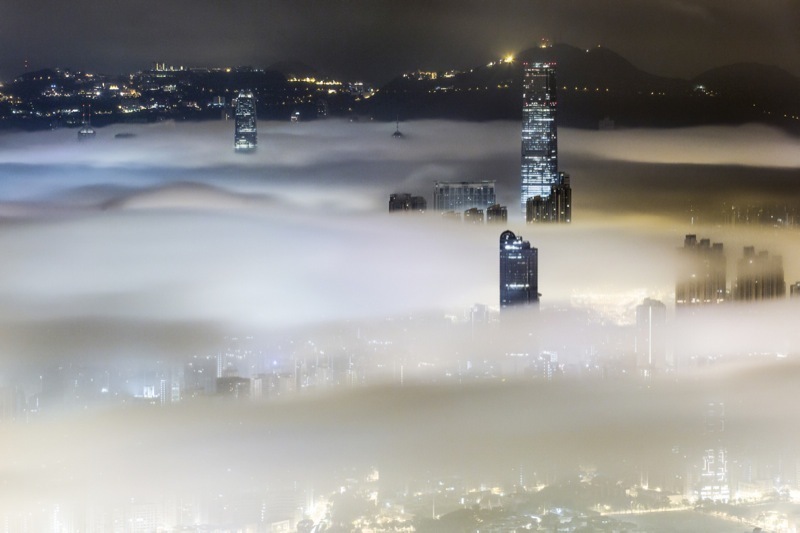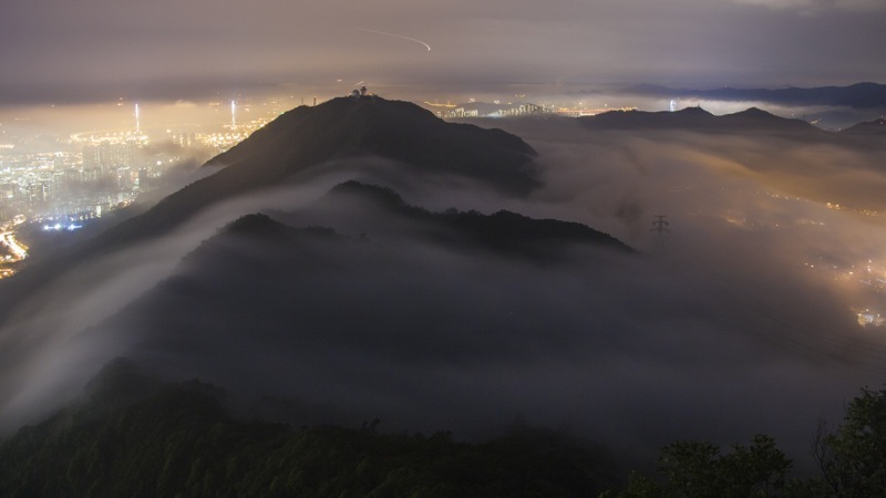 凌晨四時,看見窗外四周也是霧,馬上執拾器材跑到山上。在路途中,看見山下的大廈被雲霧包圍,這是一場夢嗎?