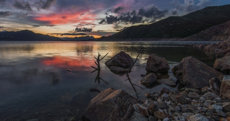 我的「老婆」壞掉了,加上天色不好,只好無奈兩手空空出發去看黑夜星空。到達東壩後,卻發現雲層與地平線間的空隙透出了一線陽光,此刻的景色意外地迷人。不知何故,我和友人沒有像大部分人一樣留在慣常的壩頂「影相位」拍攝,反而循碎石路到了壩底,找到了我們一直很想尋找的前景。沒有相機的我,把記憶卡丟到朋友的相機,照樣享受著拍攝的時光。