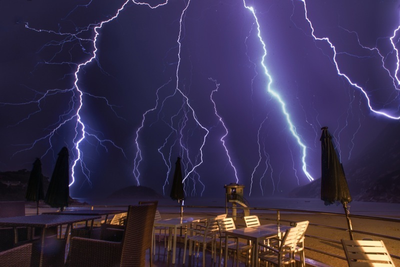 我搭上尾班開往石澳的車打算拍日出,到了凌晨兩三時,突然開始下豪雨。這時石澳像死城一般,無車無人,我只能在泳灘的更衣室避雨,等待期間拍下了三十多條閃電──但一路拍一路驚!和閃電這樣近距離接觸實在太可怕,我一心只想離開這裡,等到頭班車快要開出,便收拾相機逃掉……不過,這也是我最滿足的一次拍攝經歷。