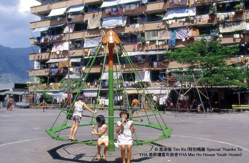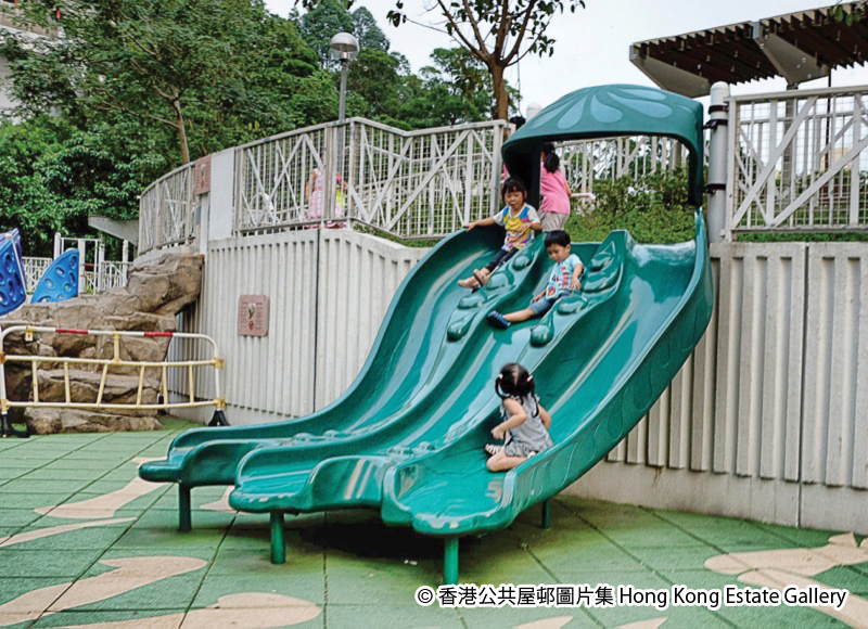 一九五三年,石硤尾寮屋區發生驚人的沖天大火,為了安置災民,政府開始大舉興建徙置房屋(七層大廈),逐漸演變成今日有三成香港人口居住的公共屋邨。由徙置區到規劃完善的公屋和日後的「居屋」屋苑,兒童遊樂設施都是不可或缺。