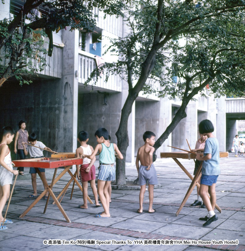 除了大型玩具,圖中的「中國桌球」康樂棋(和乒乓球檯)也曾是屋邨遊樂空間的常客,頑皮的孩子卻喜歡拿棋棍作武器……