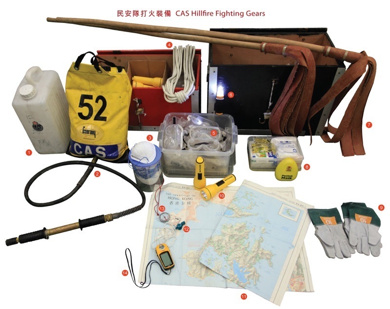 「若火勢不大,一般來說,一隊十人,一個帶隊,再分三小隊,每小隊各有三人,其中一個揹水袋,兩個拿山草拍,利用原始的方法,針對火的特性(即火三角)來打火。」雖然民安隊沒有精細的滅火裝備,但他們就是憑著他們的智慧來撲火。