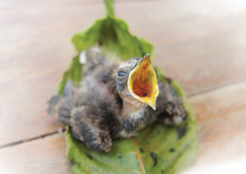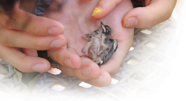 要尋找對大自然的感覺,最直接莫過於走進大自然當中。而在行程中不能預計的事,永遠是最難忘的。 七月十日下午,有一隻幼鳥從樹上掉下來了,經過被貓咬、被雨淋、被風吹,沒有父母的照料,卻活下來了。整件事情的片段,至今仍然縈繞在我心頭。