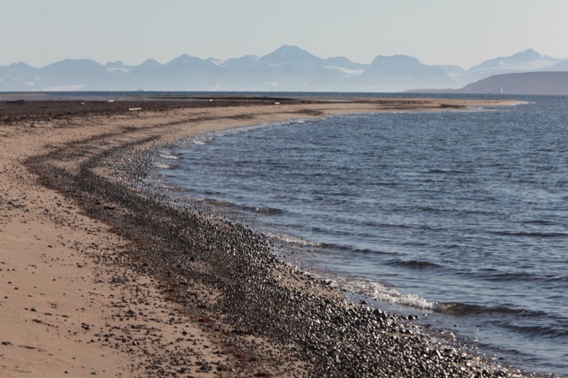 這裡有長而筆直的沙灘,根據我們對附近地貌的觀察,我們發現它本為冰磧,但現在冰川已完全融化。