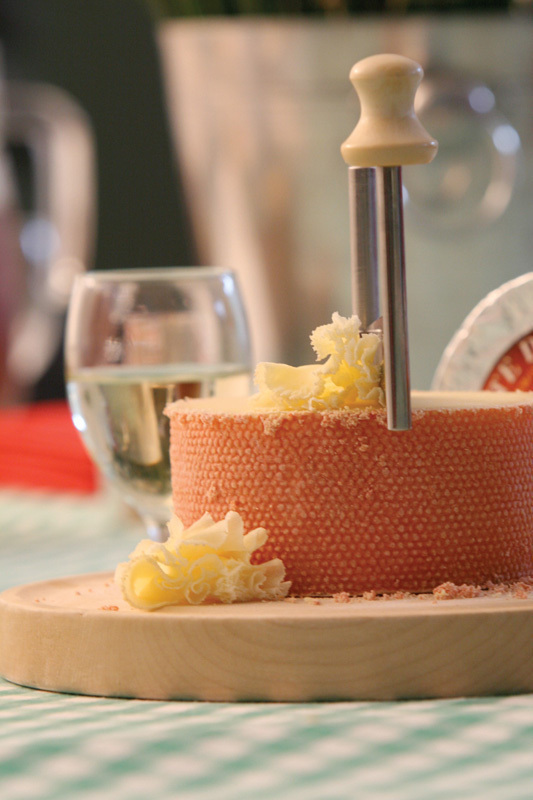 回到酒店後與大隊會合後,我們前往一家芝士廠參觀,有名的芝士Tëte de Moine就是該家族的出品。當局特別為我們安排了一場由穿上古代服飾的工作人員,用有百年歷史的器具,重演當年芝士製作過程。表演過後當然不少得品嘗正宗的Tëte de Moine,原來此芝士最好是與白酒搭配。自己在香港也會品嘗芝士配白酒,只是真的未曾見過像花一樣的芝士,工作人員以特製刀具,將芝士刨得極薄和捲起像花一樣的形狀。別以為這只是賣弄,這樣的上碟方式,比起平日把芝士切成片狀,其口感和味道真是好味得難以形容!