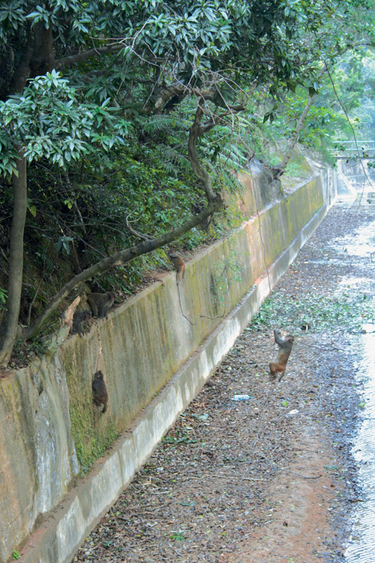 獼猴喜歡在山邊嬉戲