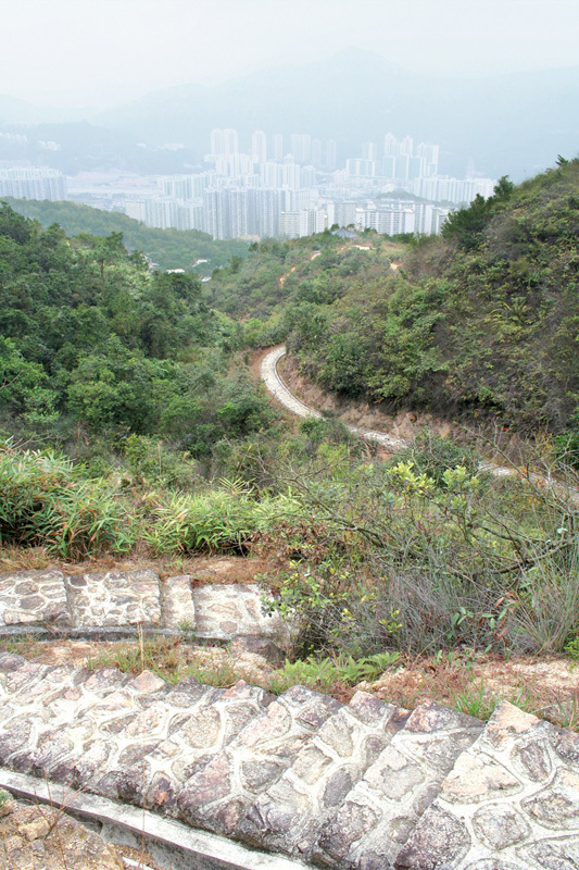 沿孖指徑山脊前行,經過走私坳,這段有不少梯級,因此也需要點氣力。不過在山上可遠觀城門水塘和下城門水塘的迷人景致,也甚值得。接著沿山腰行,不久到達城門水塘的燒烤場終點。