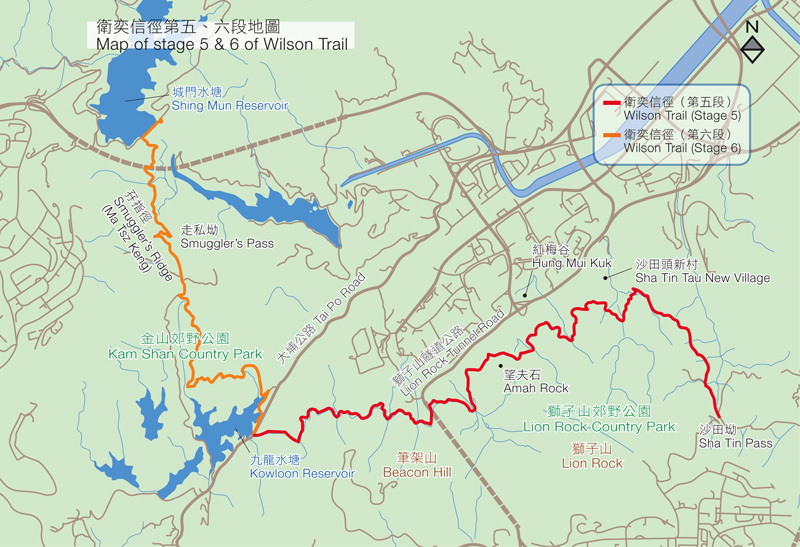 在獅子山腳下走動,不難欣賞到望夫石經年在山上守望遠方,路旁更設有介紹講述這段在漁村小港發生的傳說。多數人普遍把望夫石編成感人至深的愛情故事,卻忽略了其歷史價值。其實這個背著兒子昐夫歸的故事,正好體現出從前漁村居民的生活,並在獅子山腳下時刻提醒著香港人的歷史。望夫石的英文譯作「阿嬤石」,就令人有點不解,把著眼點放到婦人背著小孩上,雖然突出了石的外型特徵,卻失去了背後的故事和意義。過了標距柱W058後,便走在九龍健身徑上,沿途有各式各樣的健身設施。沿著迂迴曲折的引水道向西面前行,很多獼猴喜歡在山邊的樹木上嬉戲。遊人要小心身上的背包,不應把食物或膠袋放在當眼處,更不應餵飼牠們。畢竟獼猴是野生的動物,除了保護個人安全外,人類也要尊重牠們的生存方式。