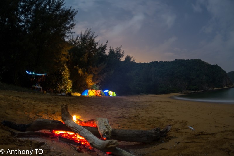 拍攝完日落便要摸黑劈林下山,吃完晚餐後原本打算拍攝星河,可惜天有不測之風雲,原本滿天繁星的天空被密雲掩蓋,唯有拍攝一些小品-營火。