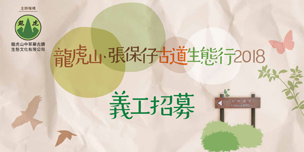 龍虎山、張保仔古道生態行2018由龍虎山中草藥古蹟生態文化有限公司主辦,香港大學職員協會、野外動向HK DISCOVERY及中西區半山業主聯會合辦的健行導賞活動。除了認識龍虎山的二次大戰前後的歷史背景外,更會向公眾介紹張保仔古道的歷史。大家都或許都認識於長洲的張保仔洞,但原來港島西的地理位置對當時的海盜亦有戰略性地位,因而有張保仔古道的出現。