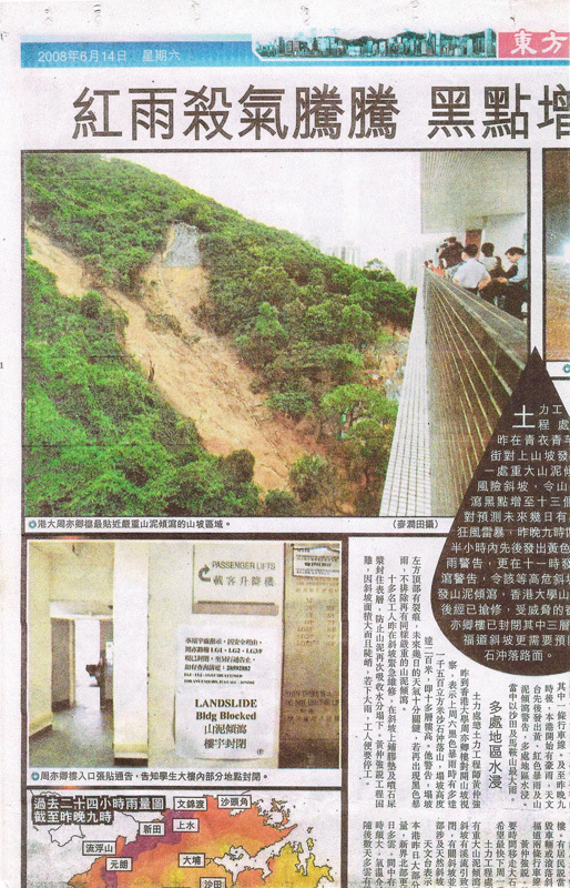 2008年6月14日關於周亦卿樓後方的山泥傾瀉剪報[2008年6月14日東方日報]