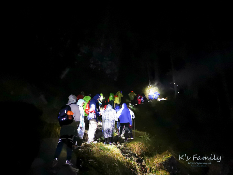 由於摸黑攻頂的路段比較困難,加上當夜突然下雨,團員們必須互相幫助才能順利上山。