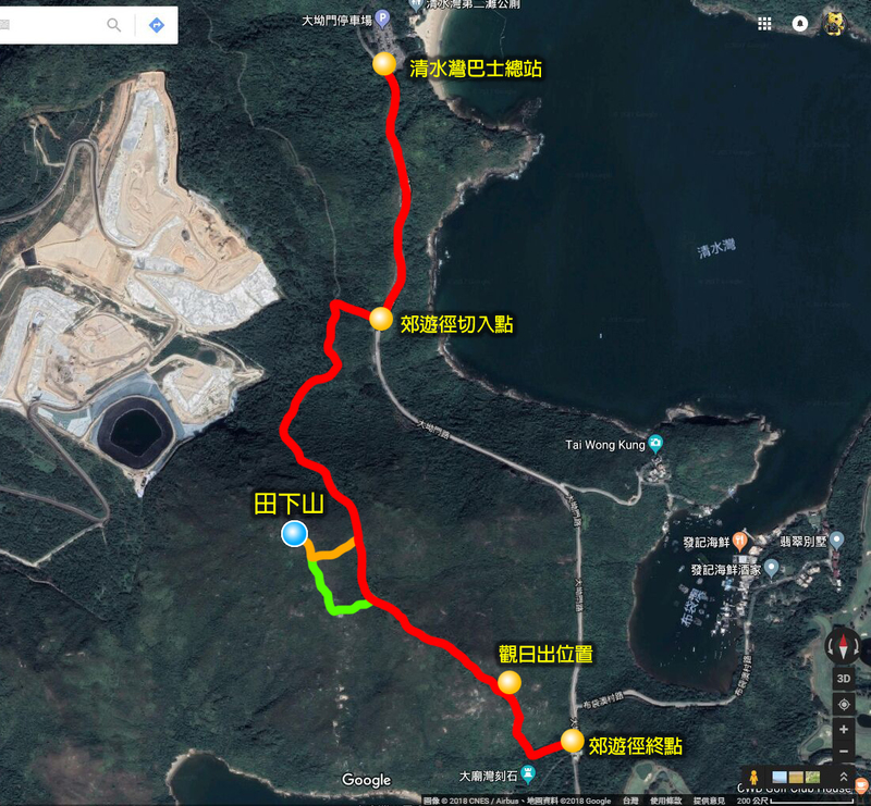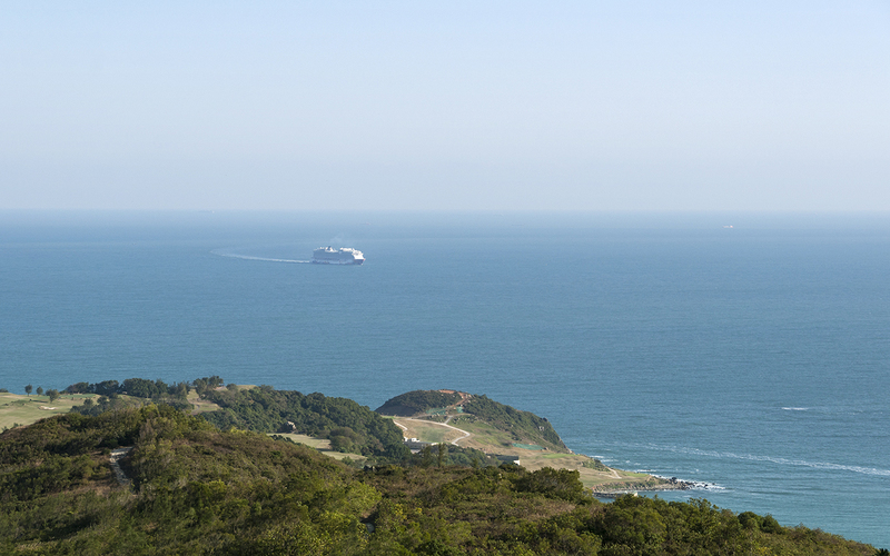 ▲ 沿「橙徑」登山,回望東南方,是無際的海洋。前景是清水灣鄉村俱樂部。