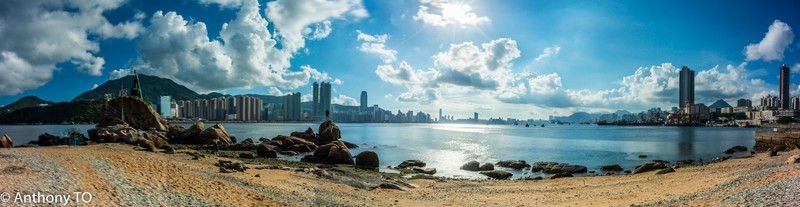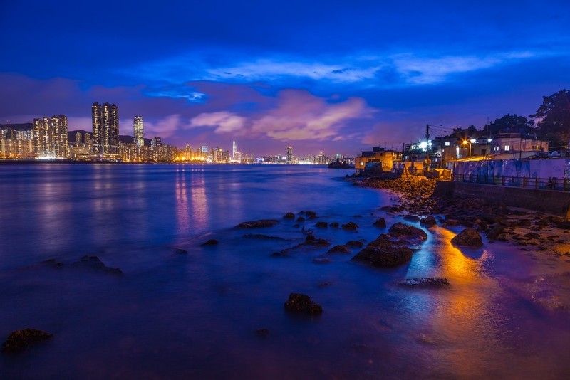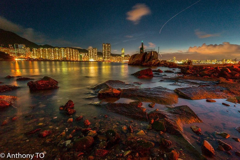 往三家村可以從藍田站或油塘站乘14X九巴到達,更可從油塘站步行20分鐘便到達。小弟拍攝的題材是日落及Magic hour,所以先為大家介紹燈塔石灘,從鯉魚門體育館沿海邊行5分鐘便到,這裏是維多利亞港及藍塘海峽的分水嶺,可以觀看對岸的海防博物館、杏花邨等港島東區建築物,亦可遠眺維港兩岸的建築物如IFC及 ICC等。