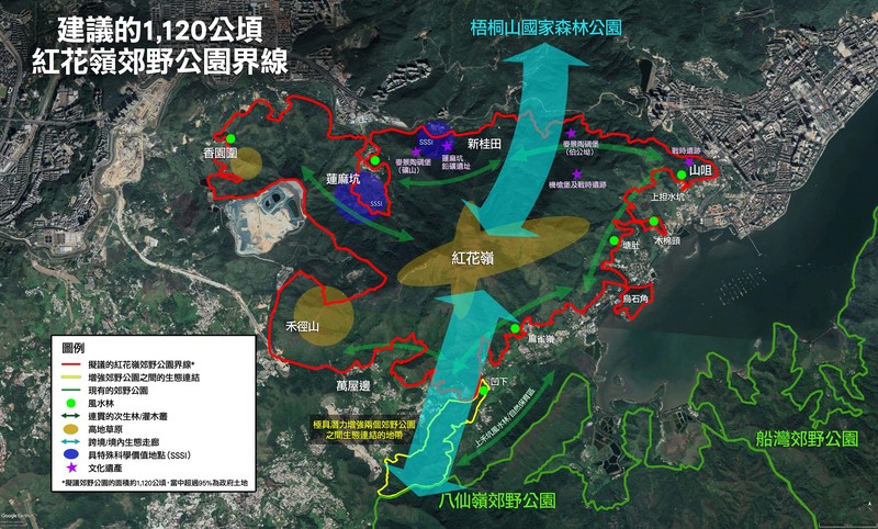 ▲ 團體建議的1,120公頃紅花嶺郊野公園界線