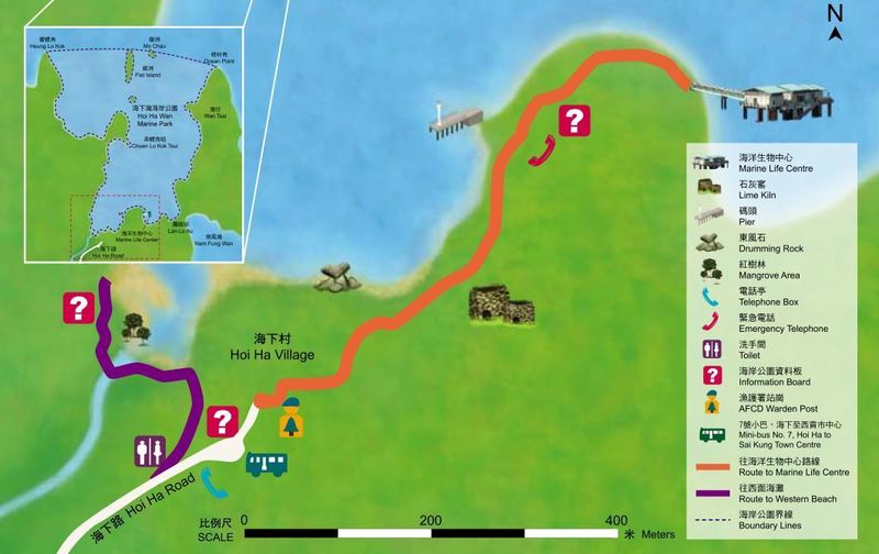 前往海下灣海洋生物中心的交通非常方便,可於西貢市中心乘坐7號小巴,到達海下村後步行約15分鐘便到。