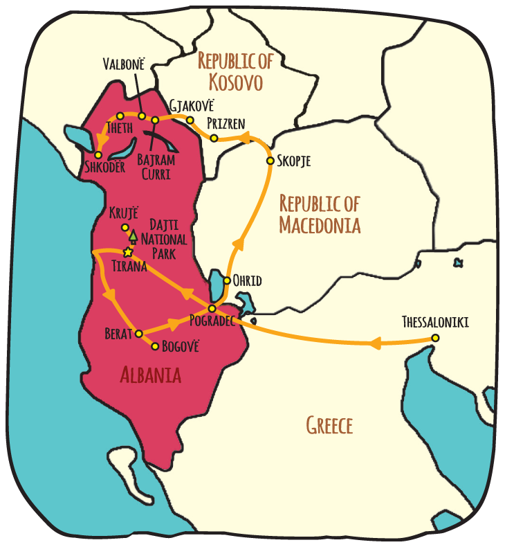 回到旅舍時,有背包客向我推薦《孤獨星球》也介紹過的國家公園,菲夫國家公園及瓦爾波那谷國家公園 ─ 說那裡的風光教人目不暇給,我看過她拍的照片後便決定造訪。及後花了幾天遊覽其他地方:先到邊境城波格拉德茨、截順風車往馬其頓的奧赫里德,再到比托拉和斯科普里、科索沃的普里茲倫,最後在賈科維察坐庫爾貢回到阿爾巴尼亞的瓦爾波那。有趣的是,在坐庫爾貢到瓦爾波那的路上只有我一個乘客,上車時只跟司機說我要去的目的地,但我倆言語完全不通,只靠指手劃腳及笑容來溝通,過程也離奇得很,可惜篇幅不足,容後再談。不過,最後他也安全把我送到。