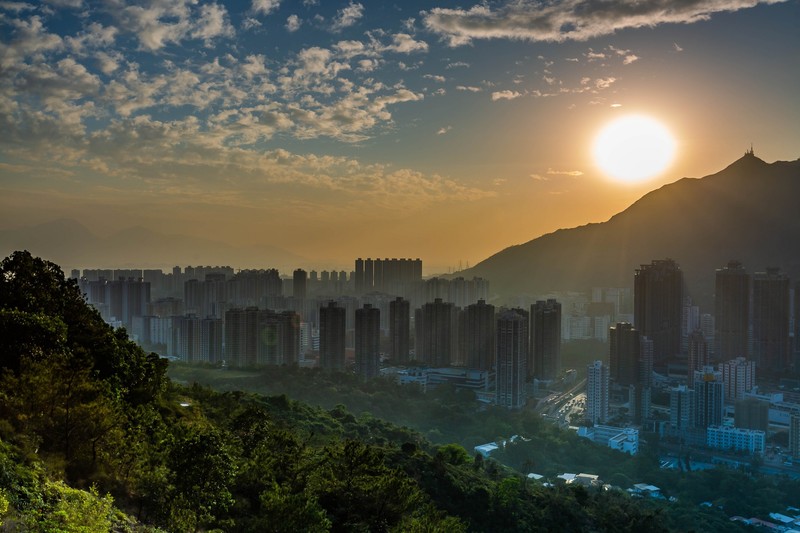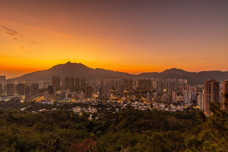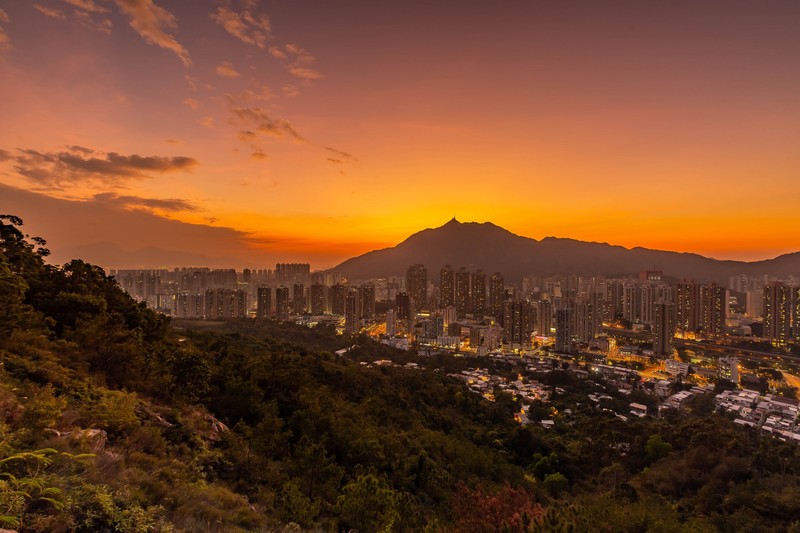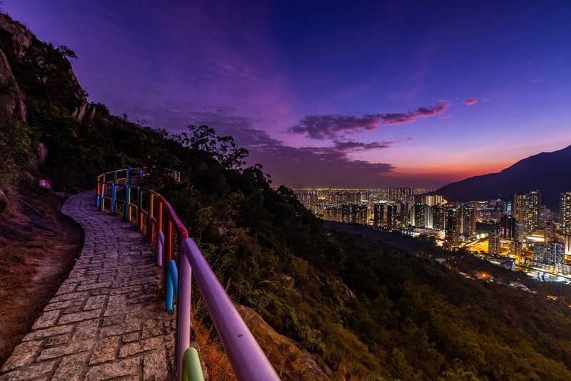 冬季拍攝日落及夜景時要行5:30pm前到達彩虹橋,去年12月頭在彩虹橋拍攝時幸運地遇上高清天氣,日落之後的magic hour配上屯門市的萬家燈火使天然及人工的色彩互相輝映,美麗得目不暇給,上天非常公平無論你是富甲一方還是家徒四壁,只要健康便能看到此用錢也買不到的美景色;想起四十年前屯門市還是農耕地方漸漸變成繁花盛開的城市有百般感受湧心頭,有見及此當堂詩興大發寫了以下的詩句:-