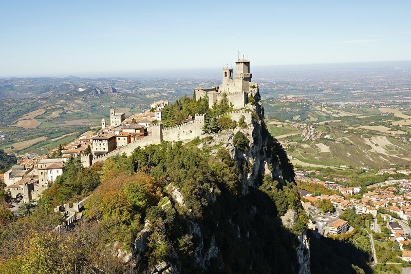 聖馬力諾是意大利境內的國中國,當中並沒有機場,需要先到意大利,再以陸路進入。筆者在博洛尼亞(Bologna)落腳,坐約1.5小時的火車到里米尼(Rimini)再轉乘巴士,直達位於蒂塔諾山(Monte Titano)上的首都聖馬力諾市(City of San Marino)。