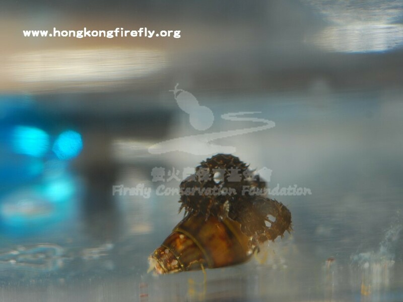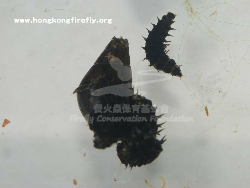 1) 首先黃緣螢會將細而尖的頭部伸入河螺的殼與蓋間之裂逢,用大顎刺入螺肉表面,將麻醉液注入河螺體內使其麻痺。
