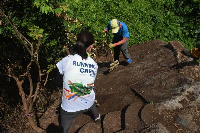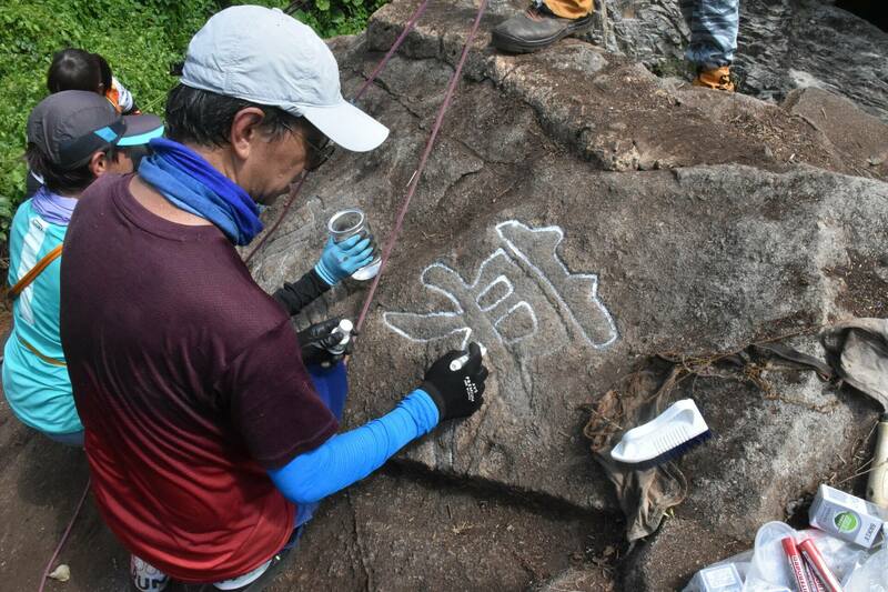 ▲ 之後,山友為刻字上色。(顏銘輝攝)