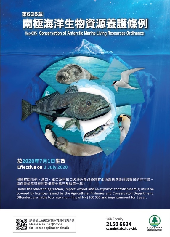 同時,香港政府訂立了《南極海洋生物資源養護(犬牙魚產品證書制度)規例》(第635A章)及《南極海洋生物資源養護(港口巡查及管制)規例》(第635B章),以實施《公約》下的犬牙魚產品證書制度及港口巡查及管制措施。
