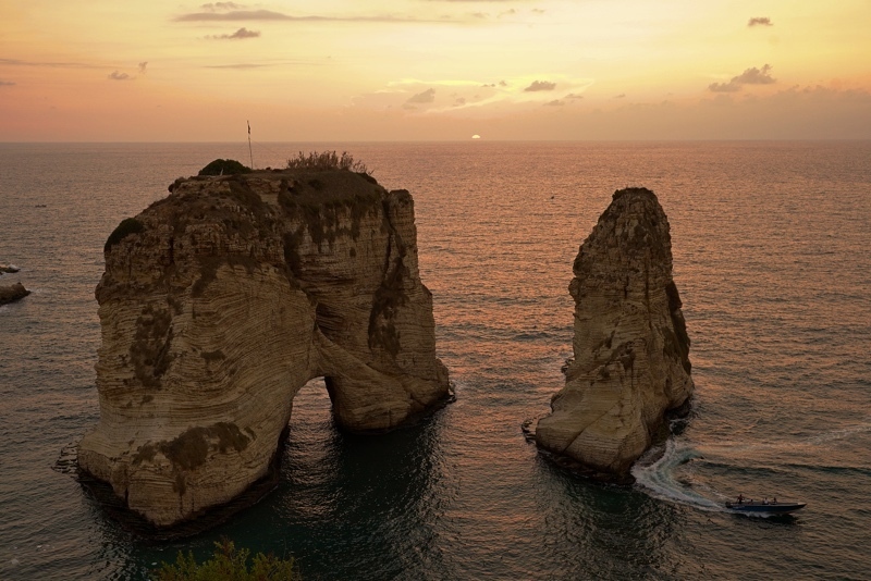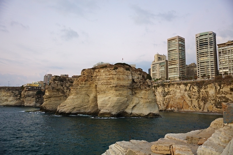 走到海濱長廊巴黎大道(Avenue de Paris)的西端,便可見貝魯特地標景點鴿子岩(Pigeon Rocks),傳說這是希臘英雄Perseus使用美杜莎(Medusa)的頭,把海怪化身成石的遺體。由於面向正西方,這裡是觀賞地中海日落的著名勝地。