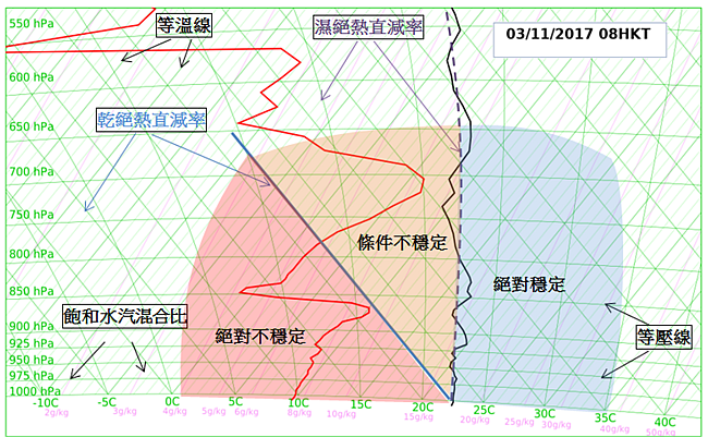 文、圖:香港天文台(關錦倫、黄秀霞)2018年2月 教育資源>資源匯總>利用溫熵圖評估大氣穩定度