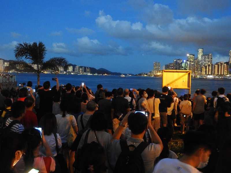 ▲ 成千上萬的市民站在黃埔海濱,期待觀賞這次特別的天文現象,馬路也泊滿了汽車,水洩不通。