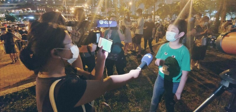 ▲ 大家見到暗紅的月亮,都十分興奮,可惜天未入黑,未能清楚看到血月。