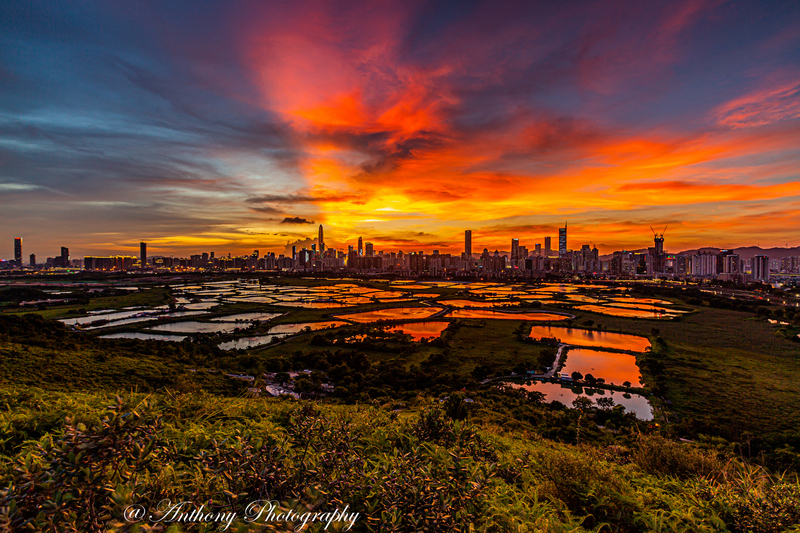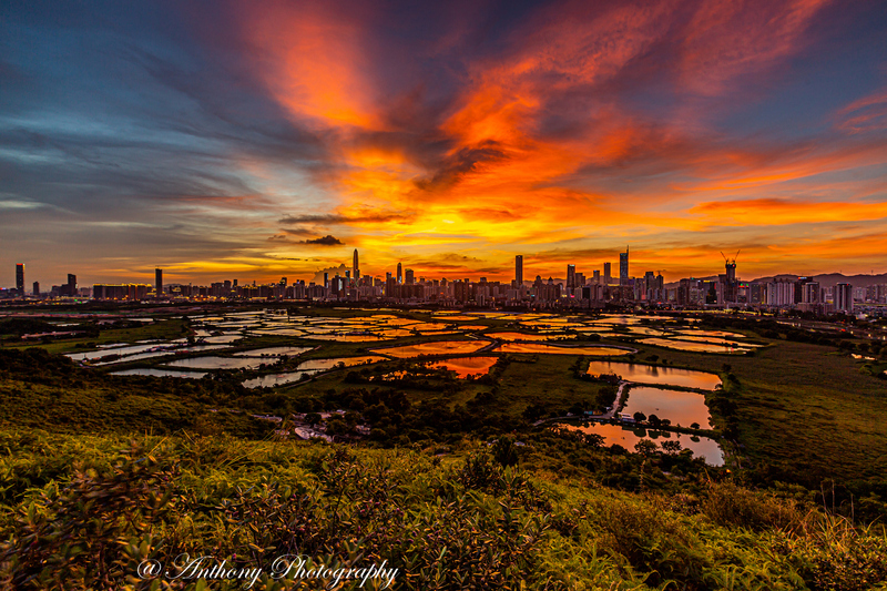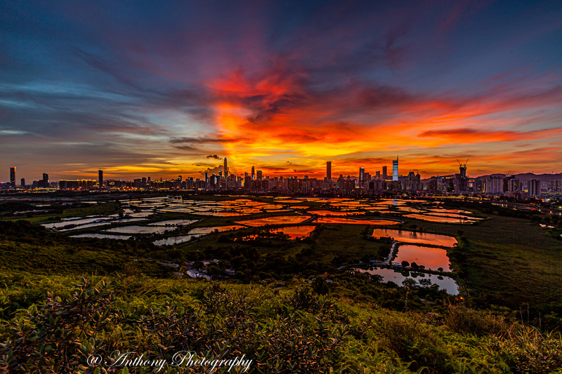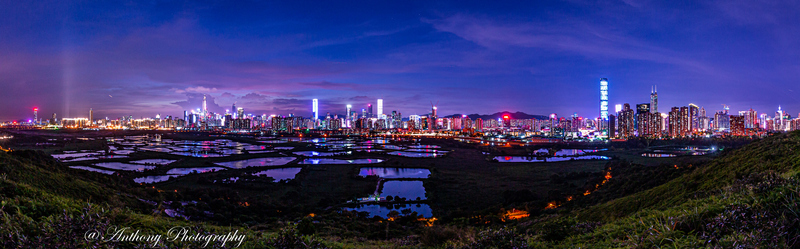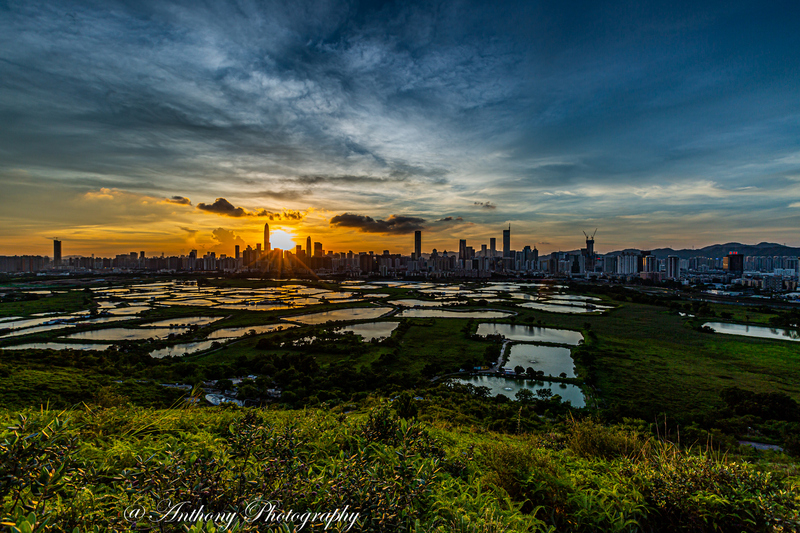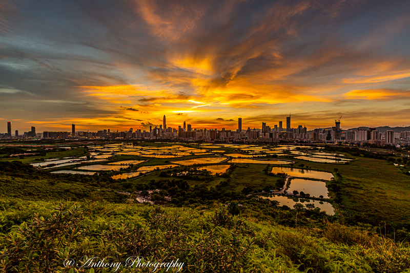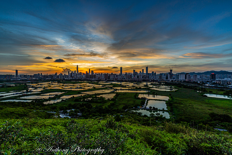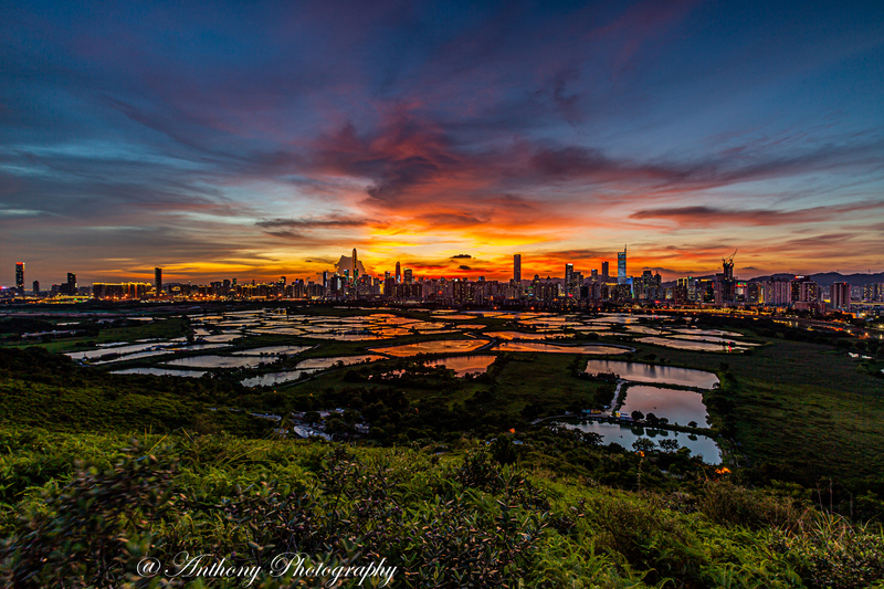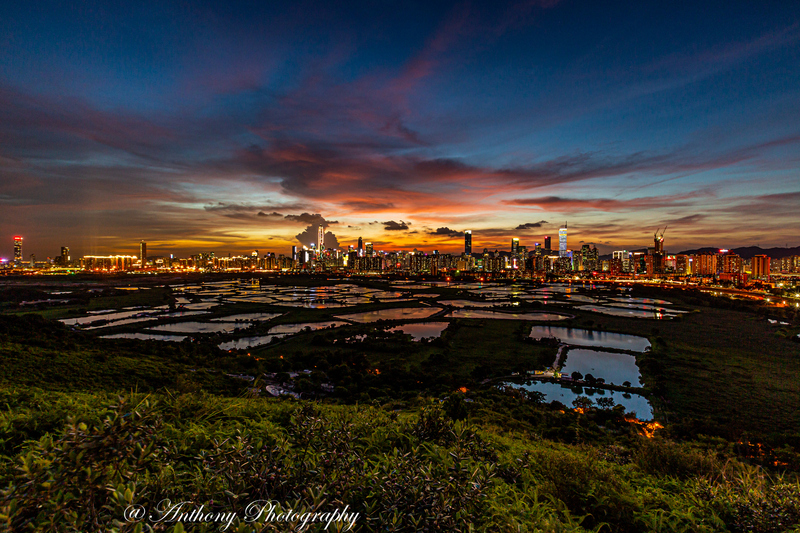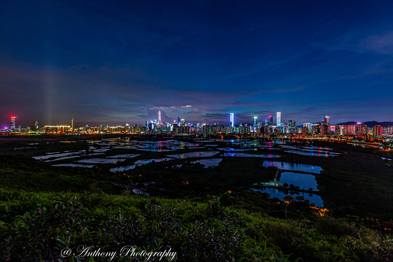 在拍攝地點可180度觀望梧桐河對岸的深圳市,襯托著港方一大片漁塘,有強烈的對比,於日落前陽光照射漁塘,金光閃閃,耀眼奪目,而於入夜後深圳繁榮鬧市的千萬盞霓虹燈光影照漁塘,使漆黑的漁塘添上點點光輝,串串色彩。