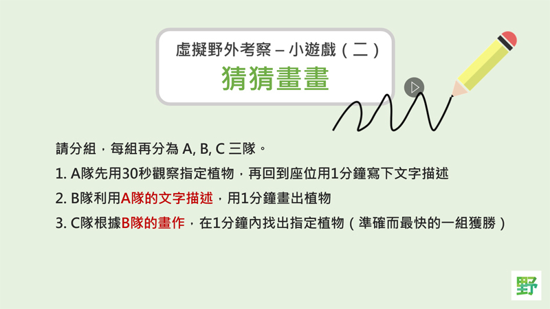 ▲ 認識植物的各部分後,可隨即進行「猜猜畫畫」的小遊戲,讓大家即時學以致用,嘗試仔細觀察和形容一株植物。