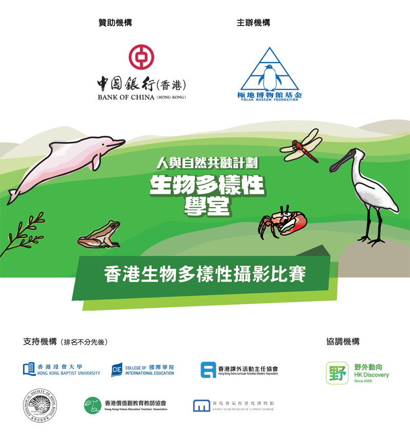 【極地博物館基金】為進一步推動大眾關注「生物多樣性」議題,由即日起推出《中銀香港人與自然共融計劃【生物多樣性學堂】》香港生物多樣性攝影比賽。