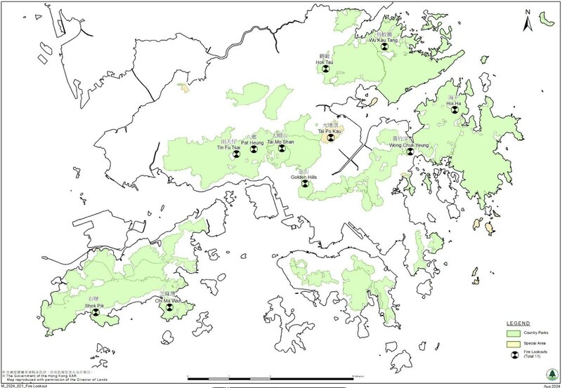 ▲全港有11個山火瞭望台。香港島並沒有瞭望台。(漁護署提供)