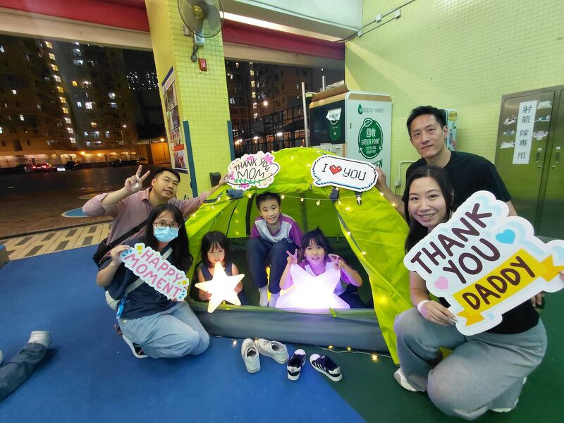 樂善堂梁銶琚學校(分校)舉行了「營」造幸福時光.「野」趣大挑戰活動,邀請 30 個家庭在晚上齊聚校園操場,把原本在郊野進行的戶外體驗活動,搬到校園進行,並由「野外動向HKDiscovey」協助籌劃及推行,場面溫馨熱鬧。雖然沒有山野作背景,卻多了一份貼近生活的真實與親切,這晚操場成了一個小小營地!