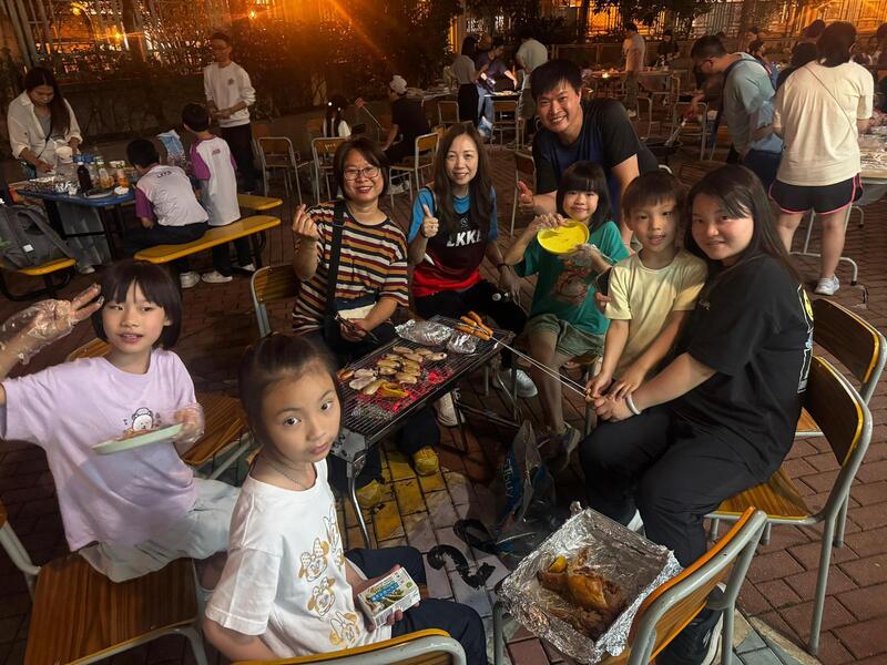 夜色漸深,家庭嘗試以火石生火起爐燒烤。火苗升起,家長與孩子圍爐而坐,一家與一家之間自然交流。平日匆忙的家長,這晚放慢腳步;孩子也在父母專注的目光中,感受到被陪伴的安心。