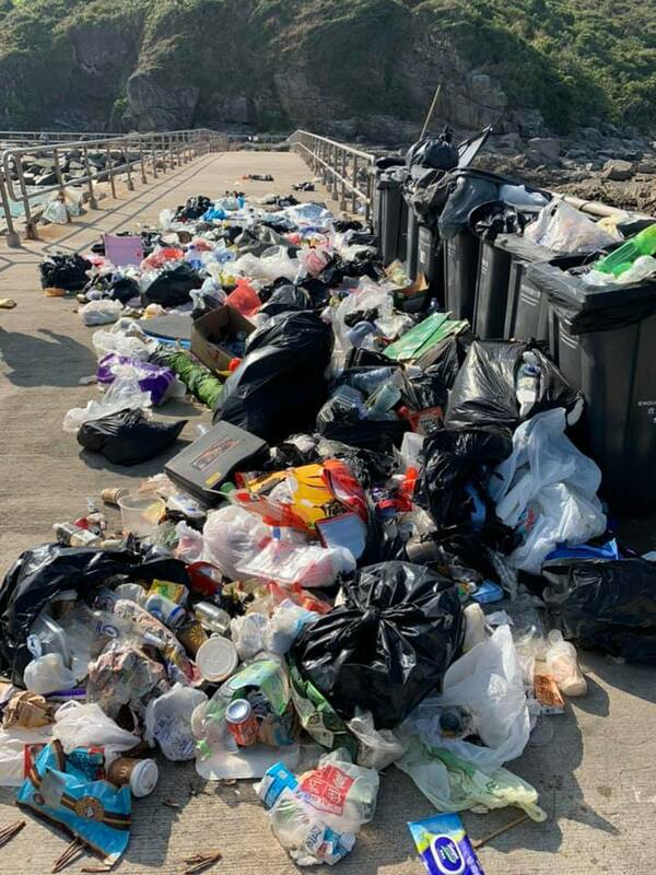 ▲網民Pauline Chan昨日在facebook行山群組上傳一張於2020年11月27日拍攝東龍島公眾碼頭垃圾遍地的照片(行山人士提供圖片)